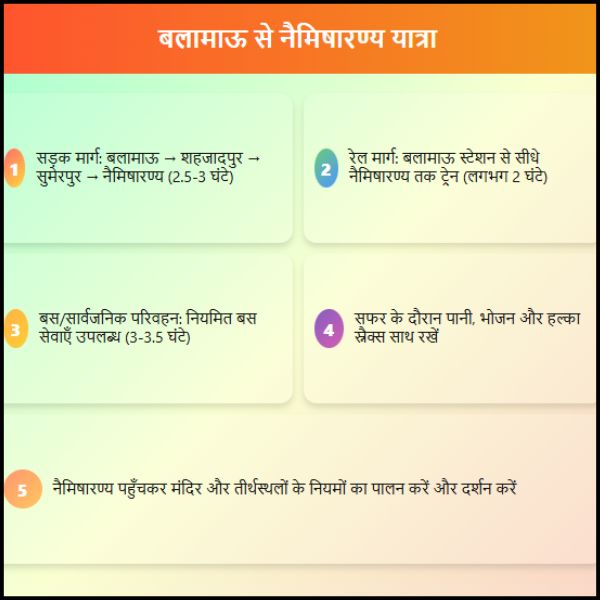 निष्कर्ष: बलामाऊ से नैमिषारण्य कैसे पहुंचे?