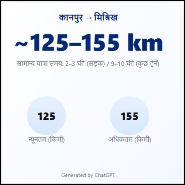 कानपुर से मिश्रिख — दूरी और यात्रा विकल्प
