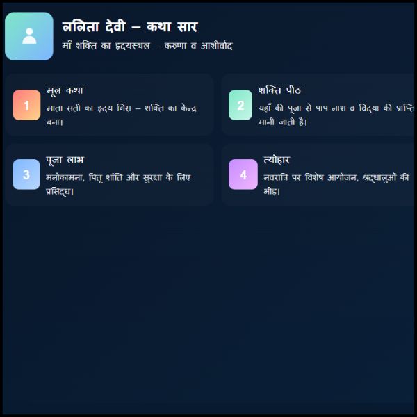 अगर आप गहराई से देखें तो ललिता देवी की कहानी हमें यह सिखाती है कि माँ शक्ति का स्वरूप हर जगह मौजूद है। जिस तरह माता सती का हृदय प्रयागराज में गिरा और वहाँ से शक्ति पीठ की स्थापना हुई, यह हमें याद दिलाता है कि प्रेम और करुणा ही शक्ति का वास्तविक रूप है।