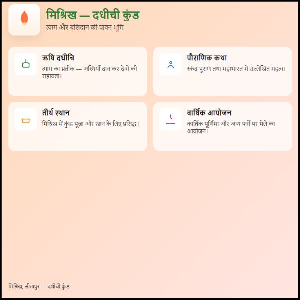- मिश्रिख कस्बे का नाम भी ऋषि दधीचि की कथा से जुड़ा माना जाता है।
