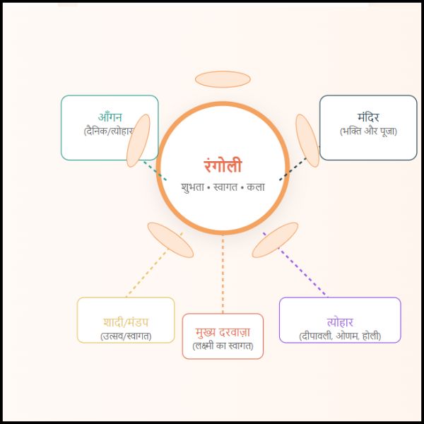 рд░рдВрдЧреЛрд▓реА рдмрдирд╛рдиреЗ рдХреА рдЬрдЧрд╣ рдФрд░ рдЙрдирдХрд╛ рдорд╣рддреНрд╡ тАУ рдПрдХ рдЯреЗрдмрд▓