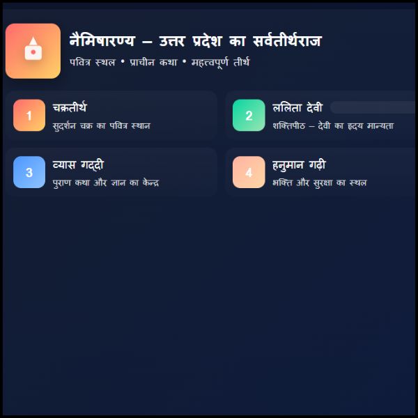 - नैमिषारण्य को “सर्वतीर्थराज” यानी तीर्थों का राजा कहा जाता है।